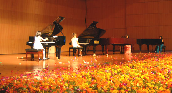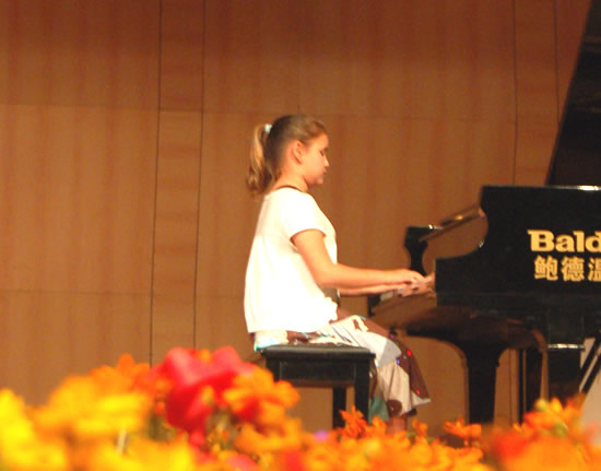 音乐会由来自中、日、韩、美和印尼五国优秀少儿钢琴手联袂演出,形式活泼多样,从独奏到合奏到联弹,孩子们灵巧的手指在琴键上不停的舞动,充满激情的演奏打动了场内所有观众,掌声阵阵回响。琴声时而悠扬浪漫,时而激昂澎湃,有家户喻晓的中外名曲《茉莉花》、《雪绒花》,也有钢琴大师作品《匈牙利狂想曲》等,还有让国外孩子觉得新鲜的中国特色作品《放牛娃儿盼红军》、《春天的故事》和《步步高》等,多变的形式和风格让观众感叹和陶醉。最后,音乐会在各国孩子们《友谊地久天长》的大合奏中落下帷幕。
