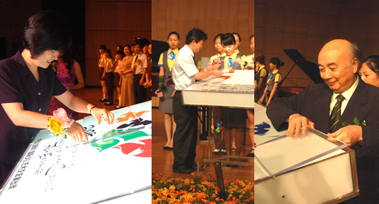 昨晚,近八百座的少年宫剧场座无虚席,“和谐中国,握手深圳”第三届国际少儿艺术交流演出季在这里隆重开幕。团市委、市文化局、市教育局、市少工委及市少年宫的有关领导及著名钢琴教育家但昭义老师出席了开幕式,共同为演出季开幕剪彩,并观赏了本届演出季首场演出——“琴音春暖,情谊花开”中外少儿钢琴交流音乐会。