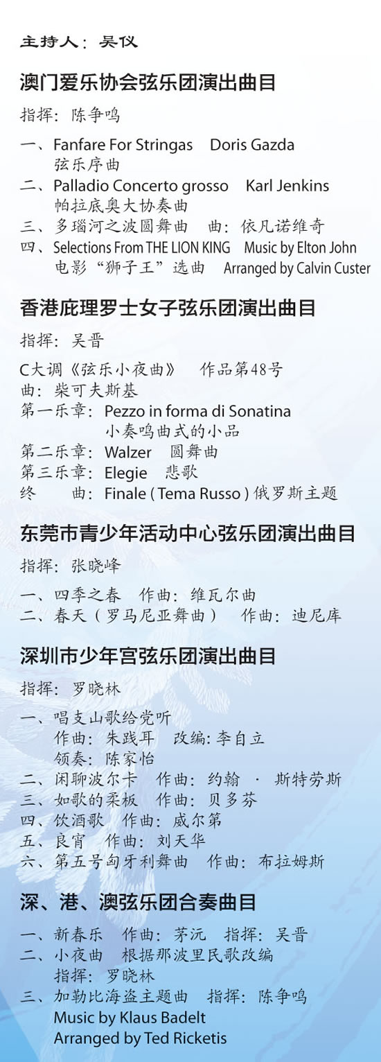 粤港澳少儿弦乐交流活动音乐会节目单