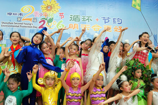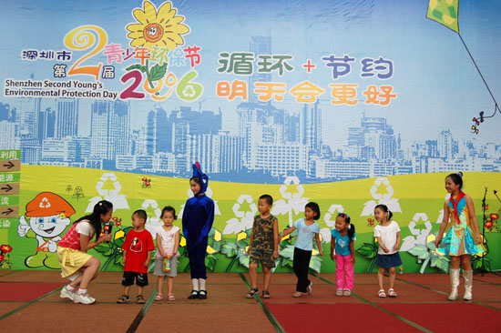 由市环保局、团市委主办、少年宫等单位承办的“第二届深圳青少年环保节”今日(6月3日)在少年宫开幕,开展了10多个系列颇具趣味的“小手牵大手”环保宣传活动。今年的环保节较之去年第一届内容上更丰富、形式上更创新,且针对青少年的特点,更体现寓教于乐的特色。5月31日在少年宫结束的“深圳市首届少儿环保文艺表演大赛”的决赛结果,也在今日的开幕式上予以公布。
