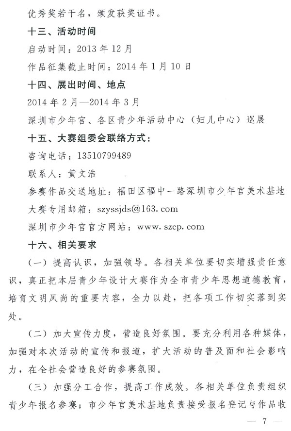 (九)大赛相关消息发布:深圳市少年宫官方网站,敬请注意浏览。