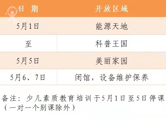 深圳市少年宫劳动节期间开放时间及开放区域敬告如下: