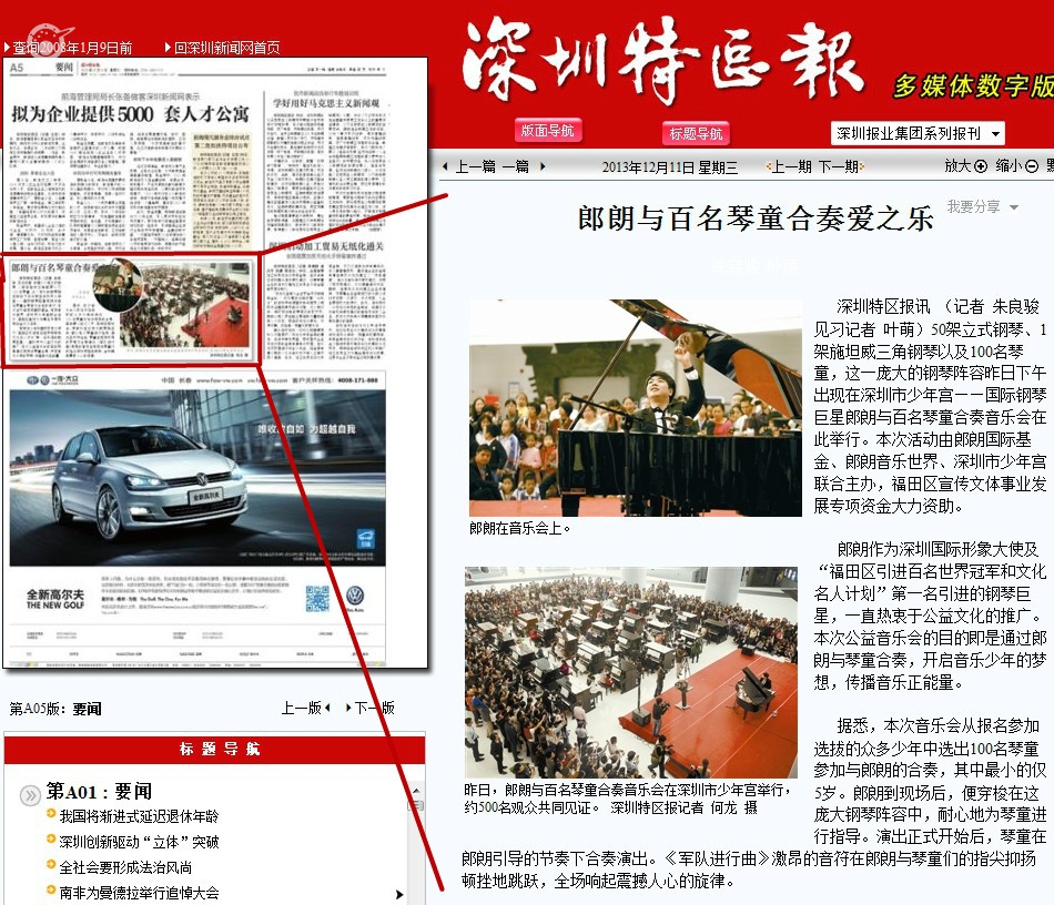 〖深圳特区报〗郎朗与百名琴童合奏爱之乐