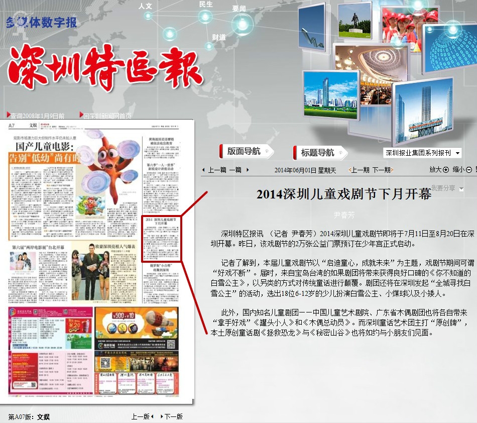 〖深圳特区报〗2014深圳儿童戏剧节下月开幕