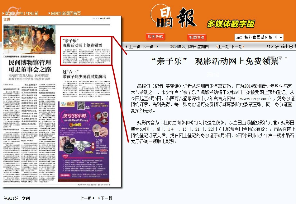 〖晶报〗“亲子乐” 观影活动网上免费领票