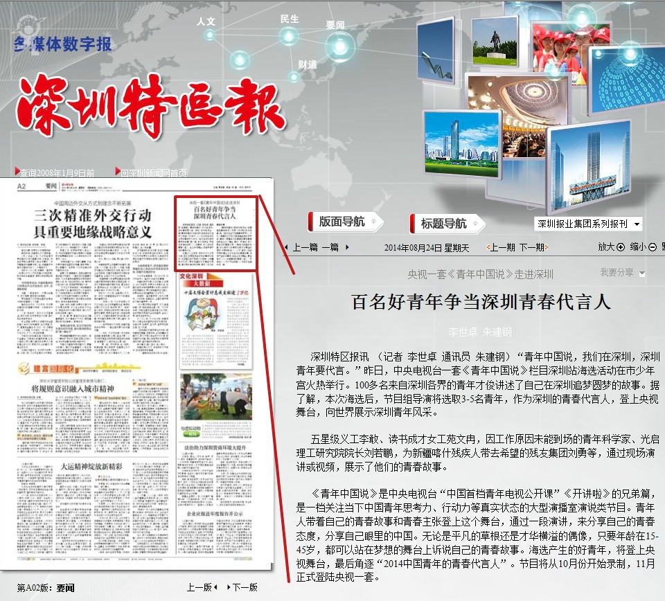 〖深圳特区报〗百名好青年争当深圳青春代言人