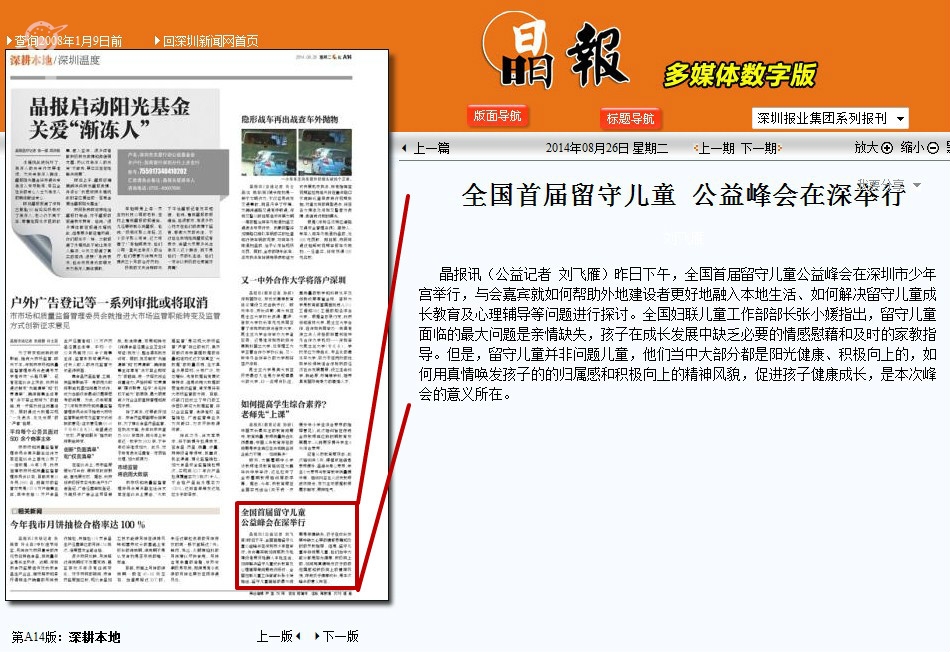 〖晶报〗全国首届留守儿童公益峰会在深举行