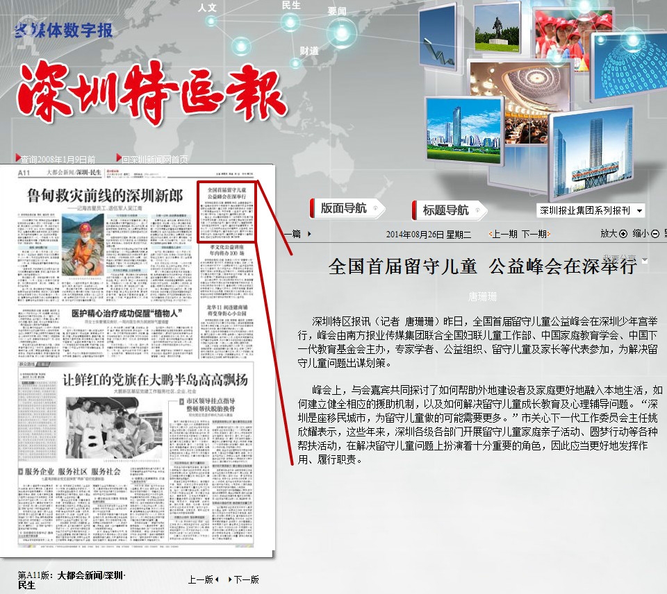 〖深圳特区报〗全国首届留守儿童公益峰会在深举行