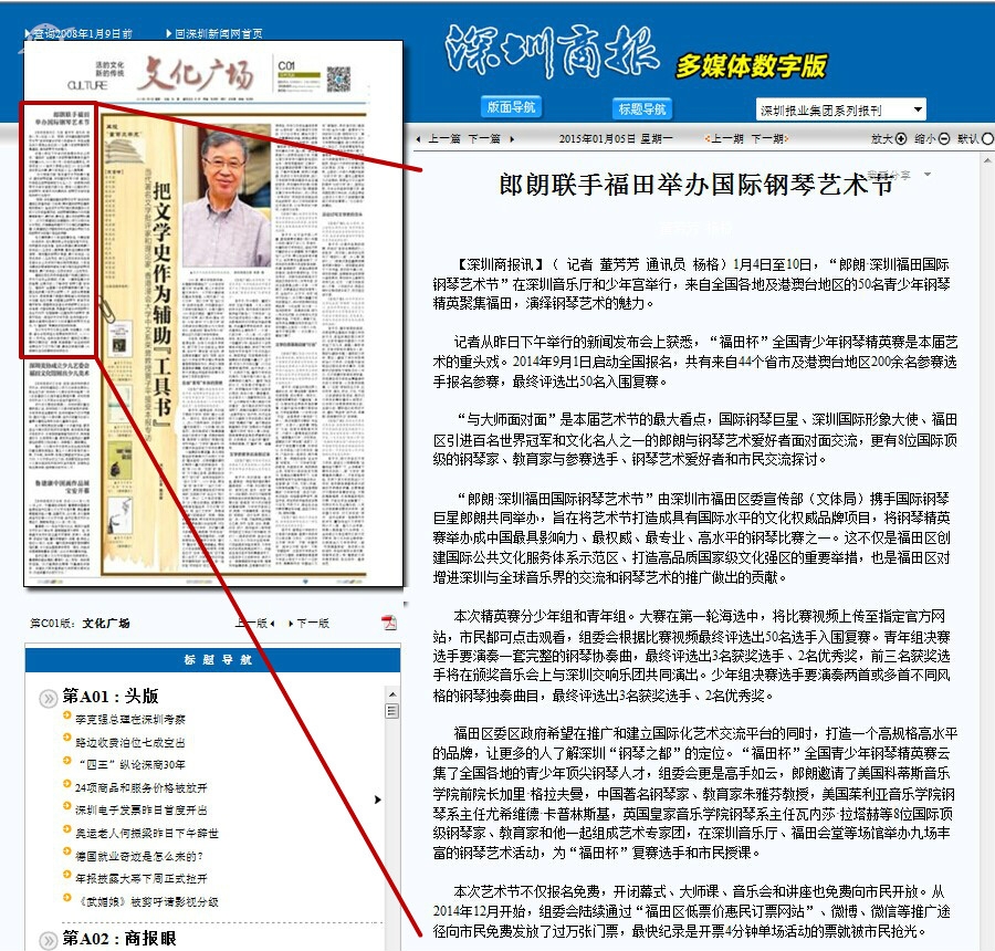 〖深圳商报〗郎朗联手福田举办国际钢琴艺术节