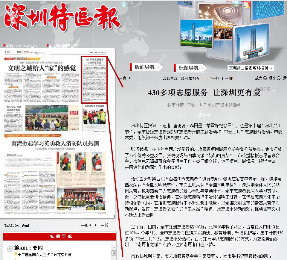〖深圳特区报〗430多项志愿服务让深圳更有爱