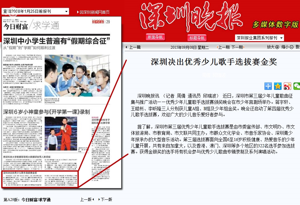 〖深圳晚报〗深圳决出优秀少儿歌手选拔赛金奖