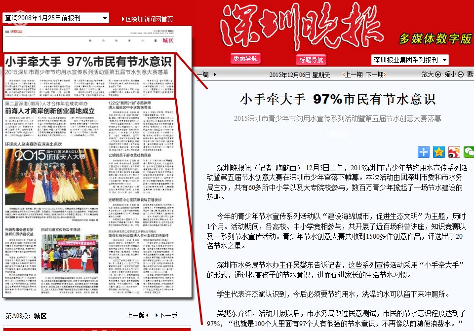 〖深圳晚报〗小手牵大手 97%市民有节水意识