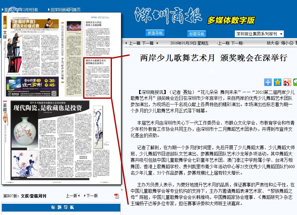 〖深圳商报〗两岸少儿歌舞艺术月颁奖晚会在深举行