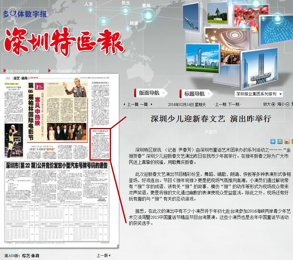 〖深圳特区报〗深圳少儿迎新春文艺演出昨举行