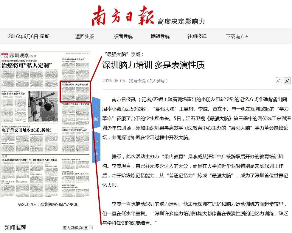 〖南方日报〗深圳脑力培训多是表演性质