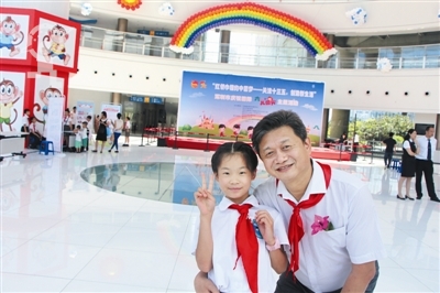 龙城小学高诗彤和深圳市总辅导员石淳合影。