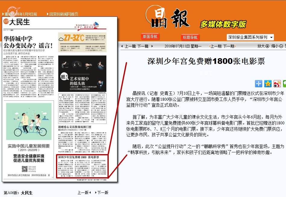 〖晶报〗深圳少年宫免费赠1800张电影票