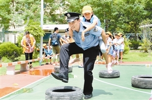 南山消防监管大队民警陪同喀什的青少年开展消防体验活动。晶报记者 刘钢 通讯员 陈荣华/摄