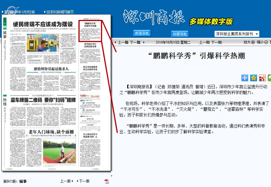 〖深圳商报〗“鹏鹏科学秀”引爆科学热潮