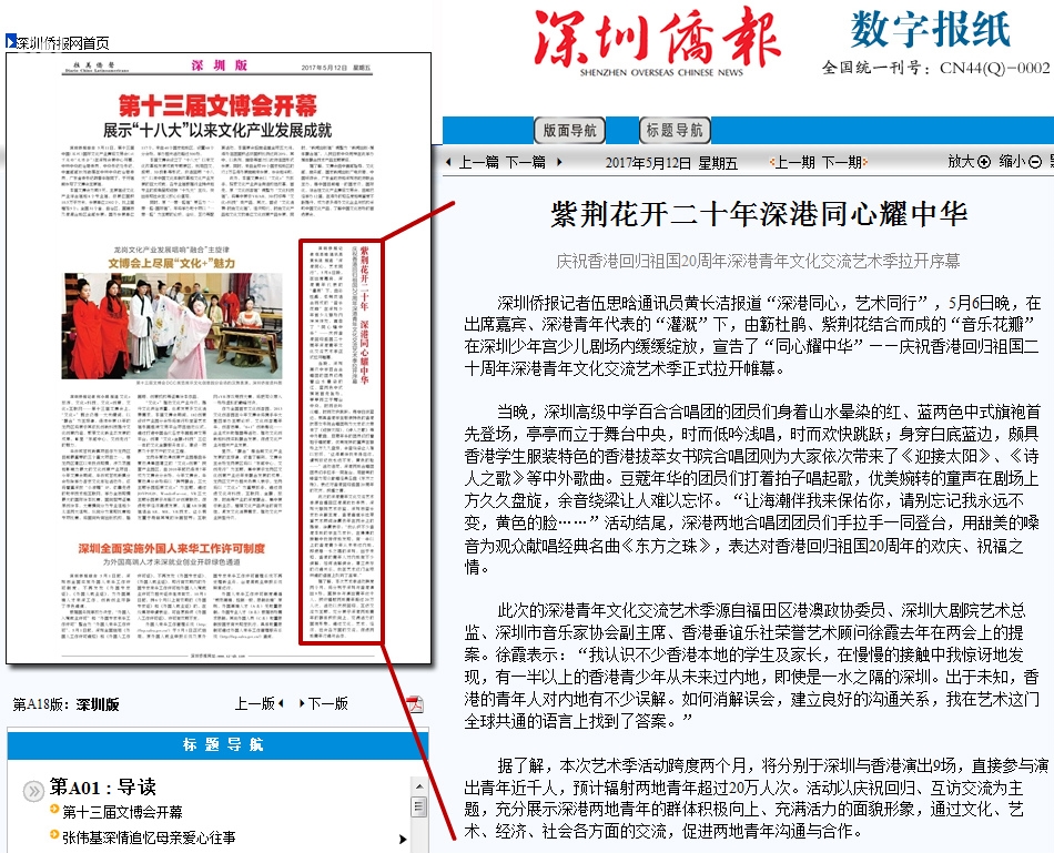 〖深圳侨报〗紫荆花开二十年深港同心耀中华