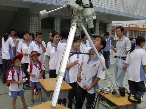 六月八日中午,少年宫组织了福田区部分中小学近百名学生开展了“金星凌日”天文观测活动,整个活动在少年宫徐文生老师和莲花中学张老师的带领指导下历时了大约六小时。