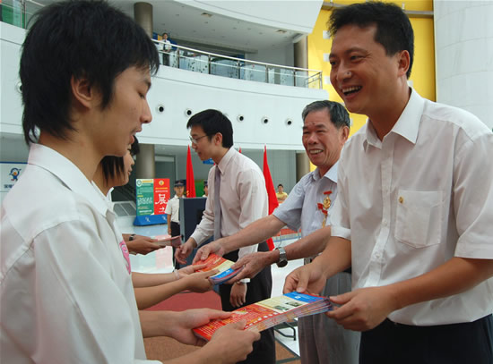6月29日下午,《青少年深圳红色之旅指引图》在深圳市少年宫水晶石大厅举行了隆重的首发式。东江纵队老战士和团市委系统的全体党员,部分学生代表和市民代表共200多人参加了仪式。主办单位中共深圳市委办公厅史志办公室、共青团深圳市委员会向学生代表赠送了《青少年深圳红色之旅指引图》,同时向深圳市少年宫、青少年活动中心、大鹏教育基地、深圳市团校授予“青少年深圳红色之旅”旗帜,开启了深圳自己的红色之旅路线。仪式结束后,部分党员走进社区,向青少年派发《指引图》,部分党员来到莲花山、东江纵队北撤纪念亭等红色景点,向市民介绍深圳的革命历史,并重温入党誓词,以特别的方式纪念党的生日。