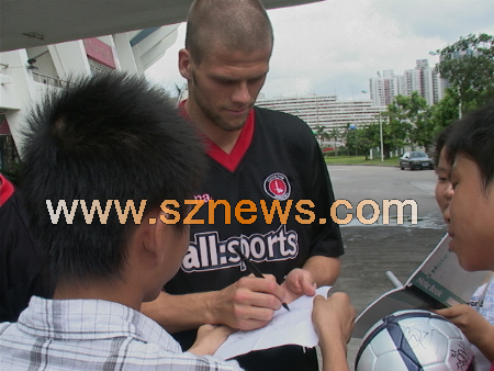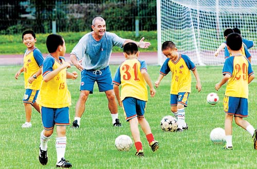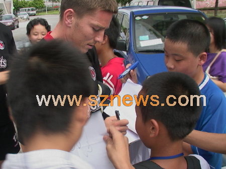 英超查尔顿体育场体训 陪深圳小球迷练球(图)