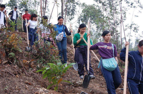 以共青团员为代表的少年宫植树者,在陡峭的山坡上,两人一组,挖坑、扶苗、铲土、填埋、压土、浇水……程序到位,动作娴熟。2个多小时过去了,100株幼苗在同志们的努力下被栽种得整整齐齐,空旷的山岭又多了一份绿色、添了一份生机,全体团员也因此增强了“植绿、护绿、兴绿、爱绿”全民有责的意识。