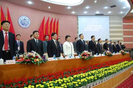 会议在雄壮的国歌声中开始