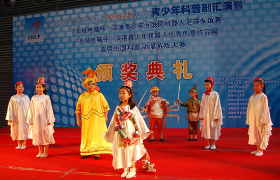 开幕式后,各科普剧组的小朋友友在科博会上进行了为期两天的科普剧演出。深圳市少年宫演出的精彩科普剧引起现场观众的阵阵喝彩,并形成了强烈的共鸣。此次汇演,《水-生命之源》获演出金奖。