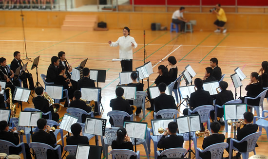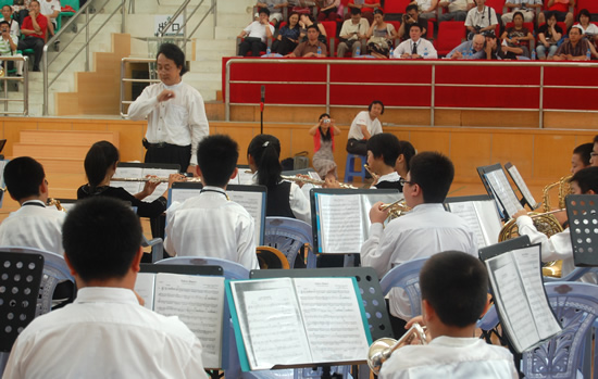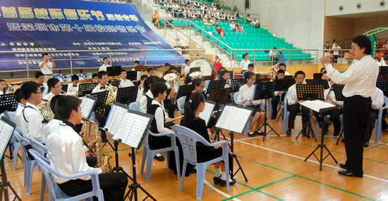 本月21日上午,一百多名着装整齐的少年宫管乐团团员来到深圳中学,参加全国首届管乐节暨深圳市第十届校际管乐节。