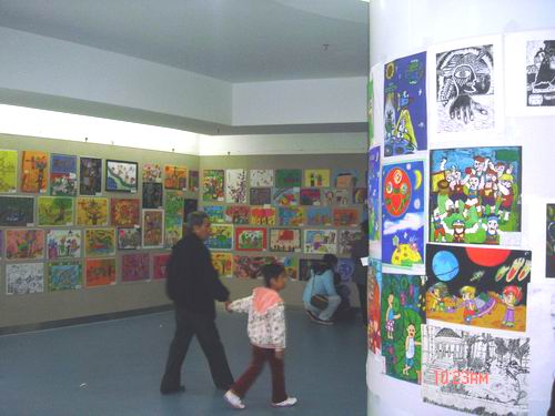 剪彩仪式结束后,开幕仪式的领导嘉宾、部分获奖的学生和家长兴致勃勃地走进少年宫四楼展厅观看了画展。