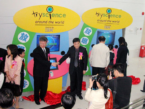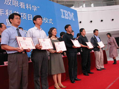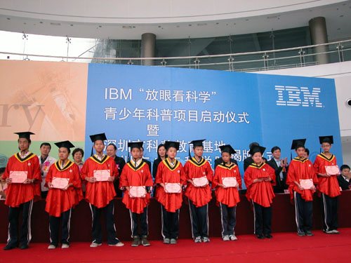 仪式上,市科协还授予少年宫“深圳市科普教育基地”称号。此外,还举行了“IBM放眼看科学”青少年科普项目启动仪式暨由IBM 公司赞助的4台多媒体科技亭捐赠仪式,有关领导、嘉宾、小朋友们在现场进行了观摩、表演。