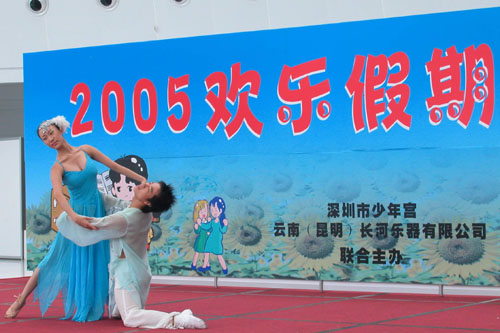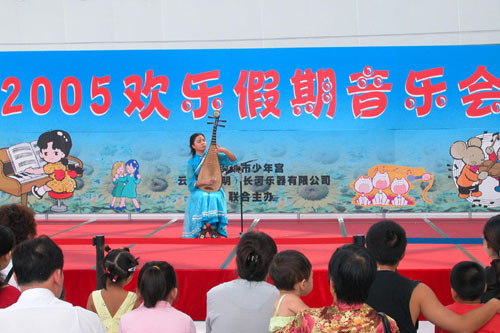 为了丰富活跃深圳近80万青少年儿童的暑期学习生活,大力推行“积极进取、健康活泼、乐观向上”的社会新风尚,深圳市少年宫从今天起将在8月份每个周末和云南(昆明)长河乐器有限公司联合主办2005年欢乐假期音乐会,邀请在本市各个文艺比赛中获奖的部分优秀学生进行古筝、琵琶、二胡、舞蹈、钢琴、电子琴等项目的表演。