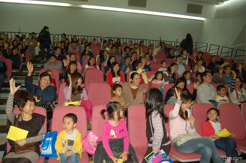 上午,2012“小公民,大讲堂”的首场讲座是来自幼儿音乐教育专家、高级讲师孙建国的《爸爸妈妈必须听的一场讲座》。孙老师以风趣幽默的语言、极具亲和力的风格以及贯穿全场的互动音乐游戏将讲座一次次地推向高潮,受到了家长和孩子们的热烈欢迎和热情支持。他用深入浅出的方式向家长们诠释了音乐教育的重要性以及音乐能带给孩子哪些改变等。下午举行的讲座是《为特区未来主人公的童年注入更高情商》,由广东省戏剧家协会理事,全国五个一工程奖、中国戏剧文化奖导演金奖获得者赵睿主讲。讲座一开始,赵老师便以一个绘声绘色的蛀牙故事,迅速地与现场的孩子们互动起来,在接下来的时间里,孩子们完全融进了赵老师所营造的戏剧氛围中,随着戏剧的种种冲突,时而兴奋、时而紧张、时而欢笑、时而尖叫。在短短的一个小时里,赵老师通过孩子们的角色扮演,成功地将儿童戏剧教育与儿童心理成长的相互促进作用向家长们一一阐述。