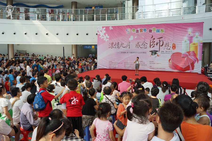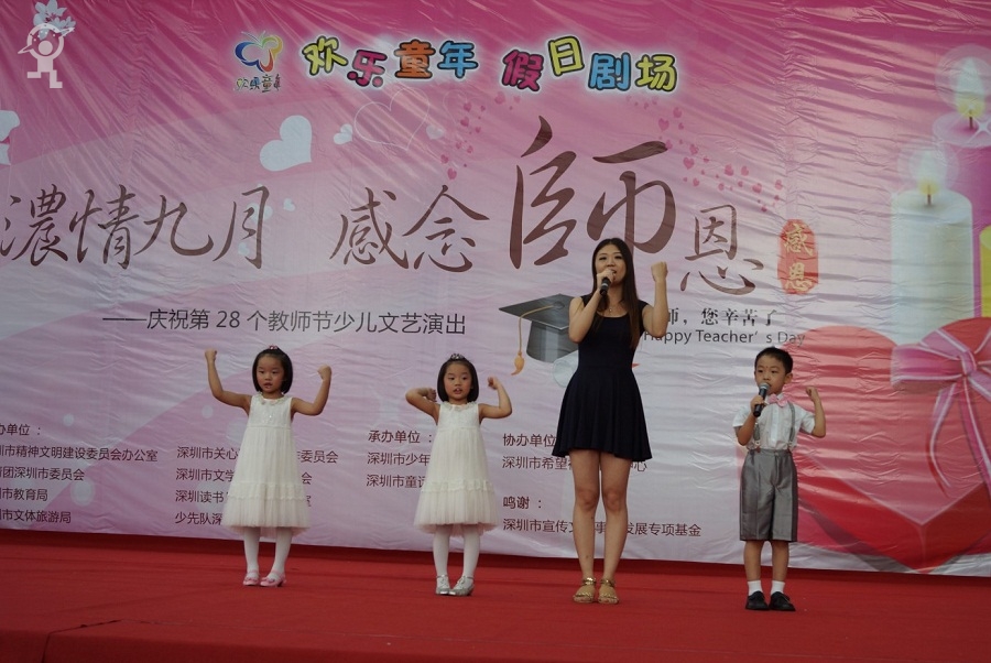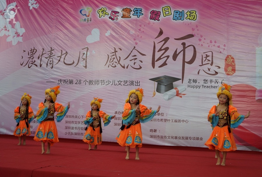 深圳晚报讯 (记者 周倩) 为迎接第28个教师节的到来,由市文明办、团市委等单位联合主办,深圳童话艺术团承办的 “浓情九月,感念师恩”文艺汇演9日在少年宫举行,深圳少儿通过精彩纷呈的节目表达对老师的感激和祝福。