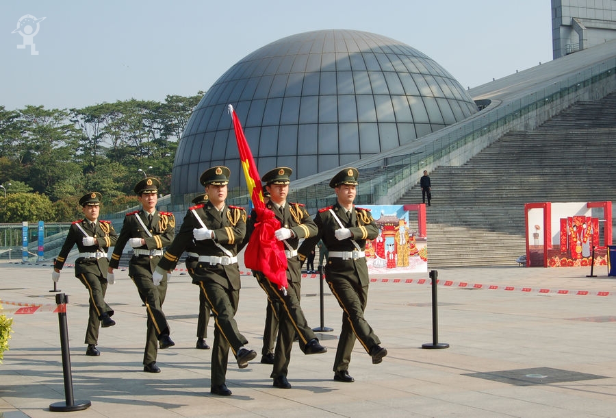内容:少年宫全体工作人员与市民在西广场参加升国旗仪式。仪式结束后,由退伍战士深圳“国旗班”成员在大厅舞台与少年儿童开展现场教学、互动交流活动。内容包括:(1)升旗仪式;(2)聆听“国旗班”的故事;(3)“国旗”知识互动问答;(3)“国家”礼仪PK赛。参与问答及PK赛获胜的青少年将获得小礼物。