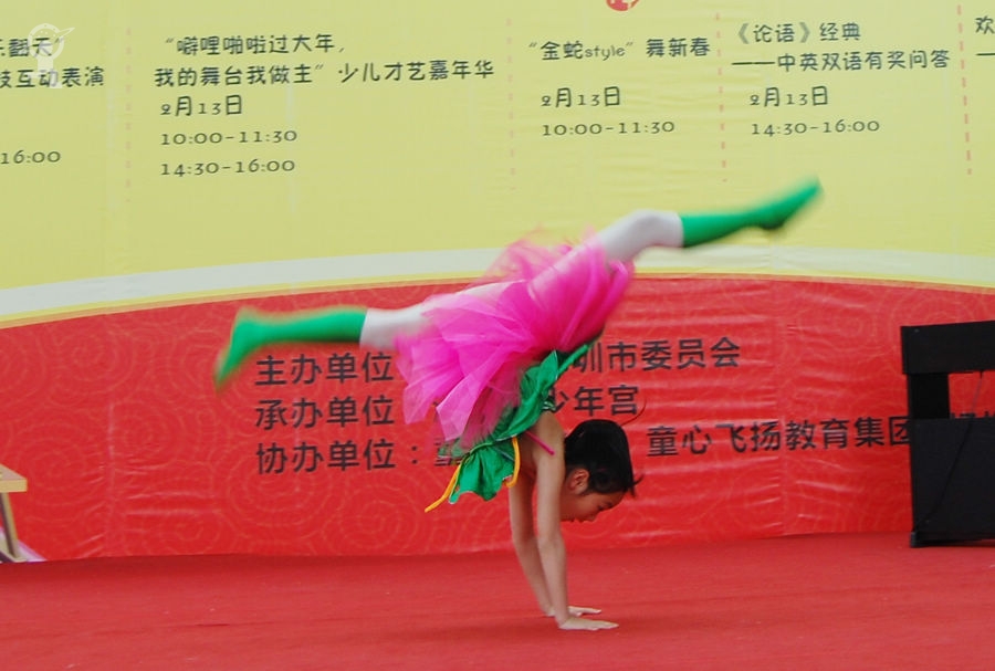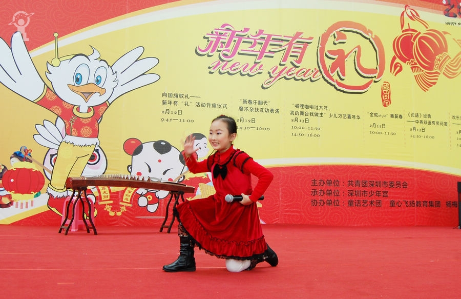 蛇年新春,深圳市少年宫举办“新年有‘礼’——2013市少年宫公益文化活动周”。活动围绕关爱主题,突出“美丽中国”与“中国梦”的概念,以“礼”字为核心,倡导广大青少年“学礼、懂礼、讲礼”,传承中华优秀传统礼仪文化,感受和参与现代文明礼仪文化的建设,培养孩子们的爱心,以实际行动向贫困儿童、深圳对口支援地区学校等特殊群体献上一份爱心或礼物。同时,活动也是少年宫送给广大少年儿童的一份新年礼物:将推出公益电影、文艺演出、展览、参观体验、剪纸、讲座与互动游戏等16项活动,大年初三将与深圳退伍战士国旗班共同举办向国旗敬礼活动,同时,相继推出我的中国梦剪纸竞赛.双语学论语,美丽中国绘画展,金蛇style舞蹈pk.噼里啪啦过大年自荐表演等活动。以丰富少年儿童春节假期的文化娱乐生活,让孩子们在少年宫度过一个欢乐而富有意义的春节。