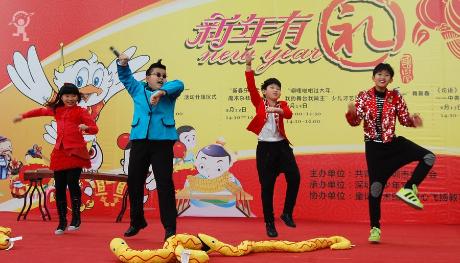 内容:由舞蹈教师编排简单动作,现场教孩子跳“金蛇style”舞蹈,可现场挑选孩子上台PK或全场同时学跳。以欢快的舞蹈欢庆蛇年的到来。该项目在“噼哩啪啦过大年,我的舞台我做主”少儿才艺嘉年华活动中穿插进行。