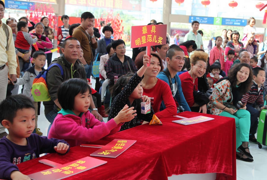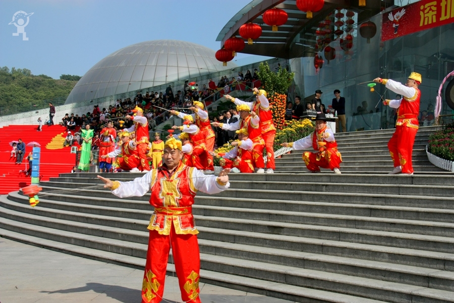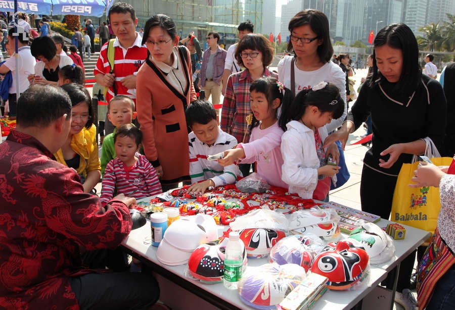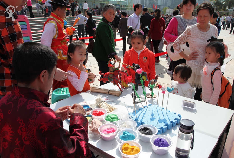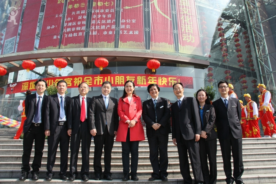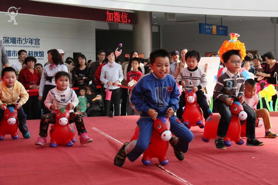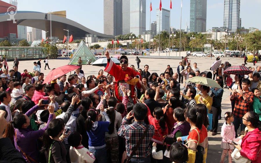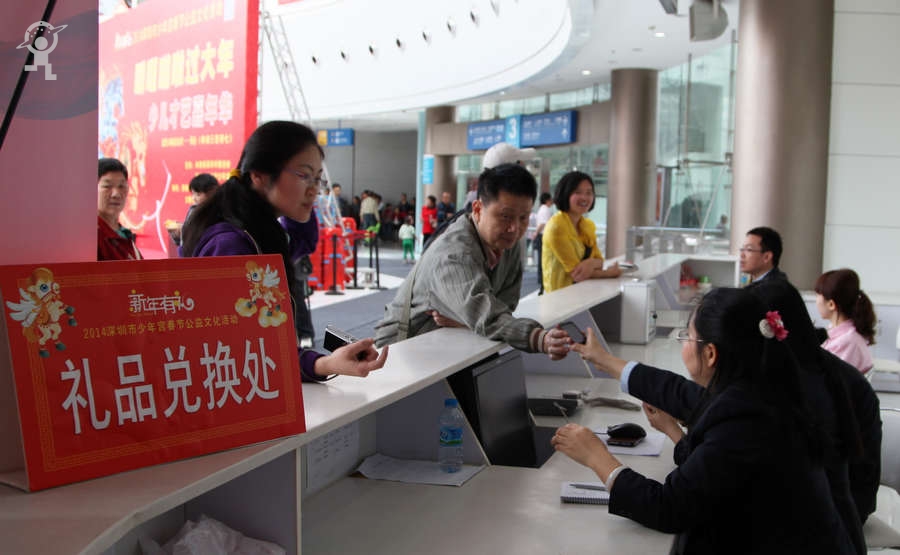 农历大年初三上午,艳阳高照,少年宫广场载歌载舞,热闹非凡,一派欢乐喜庆、红红火火的节日景象。团市委书记蔡颖给家长小朋友亲切拜年,随后,新年有“礼”——2014深圳市少年宫春节公益文化活动拉开了序幕。在年初三到年初七的5天时间里,民俗项目表演、公益演出、参观体验、微信猜谜等丰富多彩的活动将为市民朋友献上丰盛的新年大餐。
