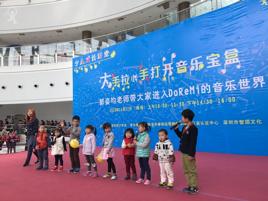去年11月,深圳市少年宫“少儿成长讲堂”曾邀请到台湾师范大学音乐教育博士郭姿均老师来到少年宫举办了两场《大手拉小手打开音乐宝盒》的音乐互动讲座。讲座全程年近50的郭老师始终活泼热情、激情四射,在她的带领下,家长与孩子们通过各种不同的音乐游戏,一起领略和体会音乐学习的趣味,现场气氛特别欢快热烈,给在场所有家长和孩子留下了深刻印象。
