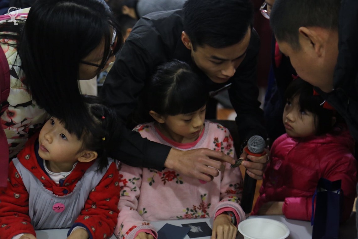 在活动现场,小朋友们热情高涨,踊跃抢答, 按捺不住发自内心的欣喜与兴奋。“我知道” “我来回答”“白蚁不是蚂蚁”…… 小朋友们求知欲极强,热烈的气氛感染着现场的每位听众。在互动环节中,孩子们好奇专注地围着老师,通过显微镜仔细观测虫珀中亿万年前的古鸟类羽毛、蚂蚁、马陆、蟑螂等生物细节,还有二十位小朋友兴致勃勃地当起了小工匠,动手打磨琥珀原石。本次活动寓教于乐,精彩纷呈,家长与孩子们全身心投入,在深圳市少年宫兴趣盎然地体验了一场科普教育盛宴。