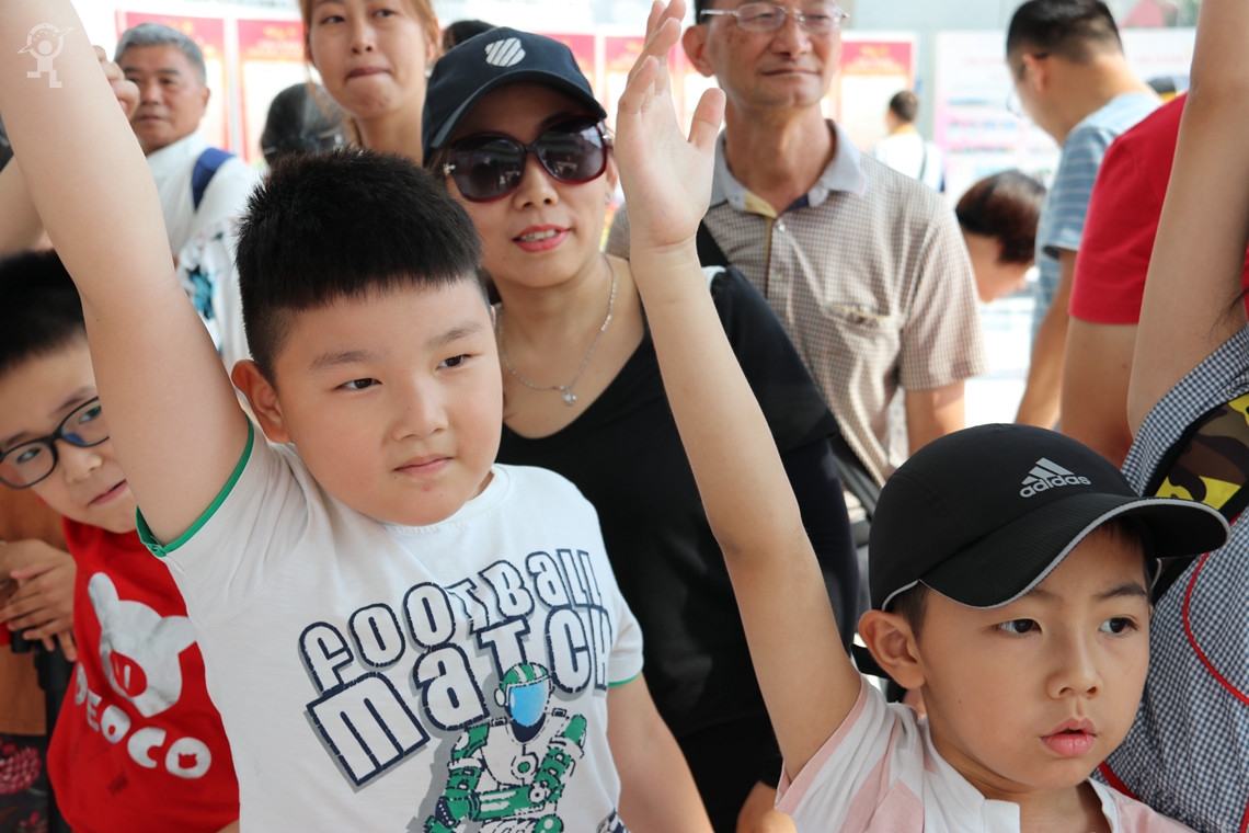 孩子们争先恐后、饶有兴致的举起小手期待着主持人姐姐的目光