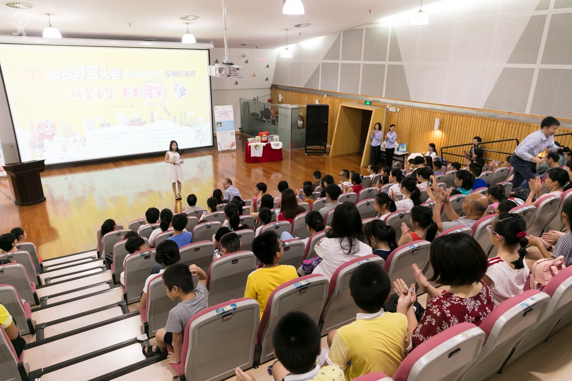 7月19日上午,少儿成长讲堂第70期——“牵手未来”中华寻宝大会深圳行活动,在少年宫三楼音乐厅举行。该活动旨在推动学习型书香社会建设,以实际行动落实习近平总书记“把读书学习作为一种追求、一种爱好、一种健康的生活方式”的要求。活动由中国少年儿童发展服务中心、中国青少年宫协会主办,深圳市少年宫、中少发展社会事业中心、中国青少年宫协会阅读推广工作委员会、中国青少年宫协会阅读推广部、二十一世纪出版社集团有限公司承办。活动通过少年宫微信公众号免费发放门票,计有200多名家长及小朋友参加。