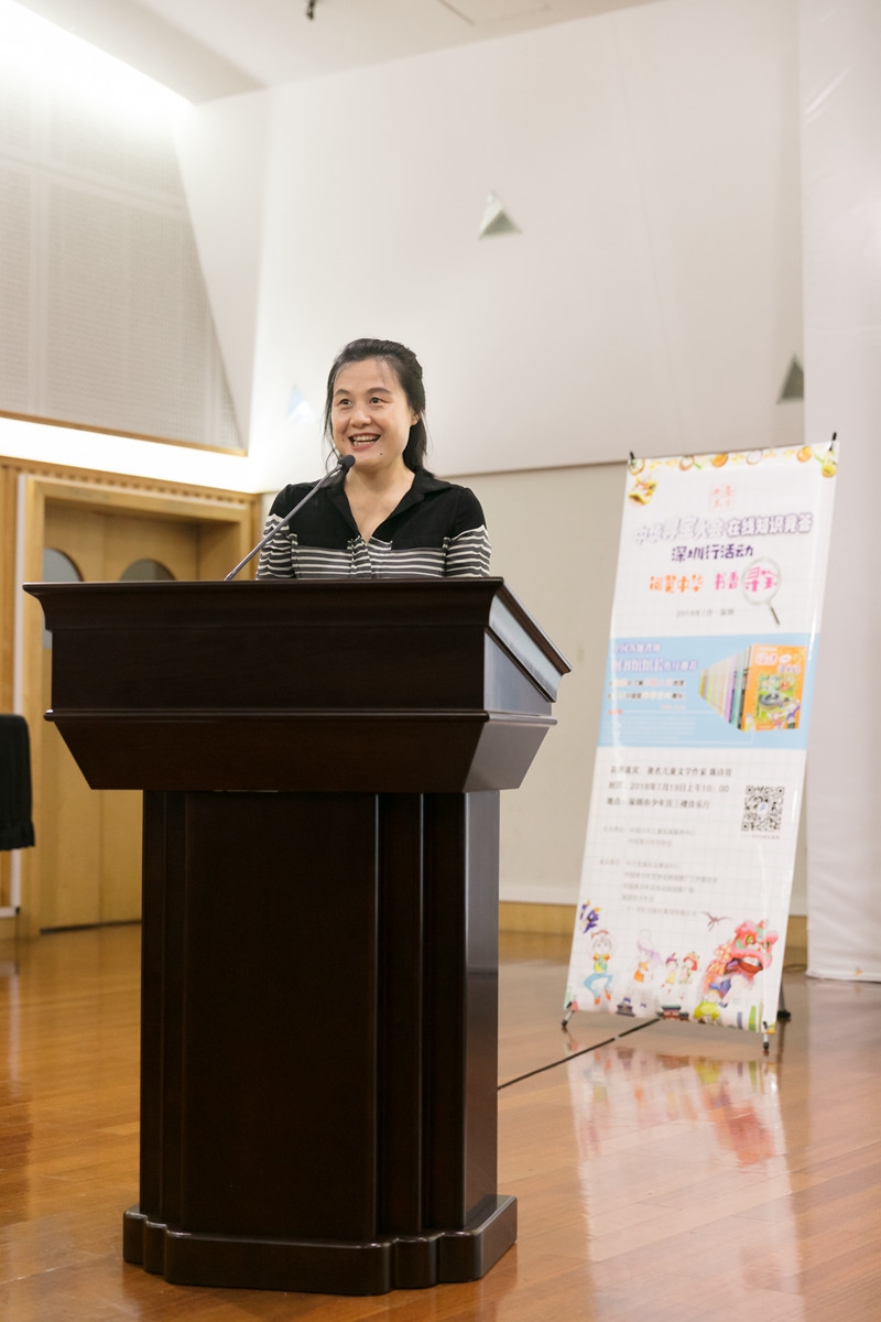 活动现场还特别邀请了深圳少年宫评议团三位小评议员代表分享“大中华寻宝系列”读书体会,并向他们颁发了优秀评议员证书。随后进行的“牵手未来”中华寻宝大会现场知识竞赛,孩子们在知识比拼中培养阅读兴趣,在寻宝故事中了解中华文化,感受纸页上的旅行,体验足尖上的中国,受到现场家长和小读者的一致欢迎。