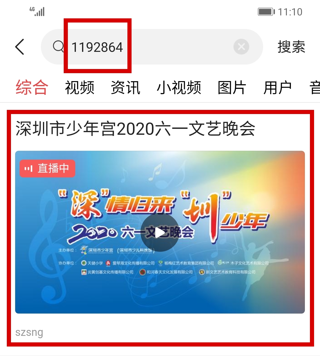 搜索:打开西瓜视频手机APP或登录www.ixigua.com网站,在搜索栏输入直播房间号1192864,选择六一文艺晚会直播链接点击进入观看。
