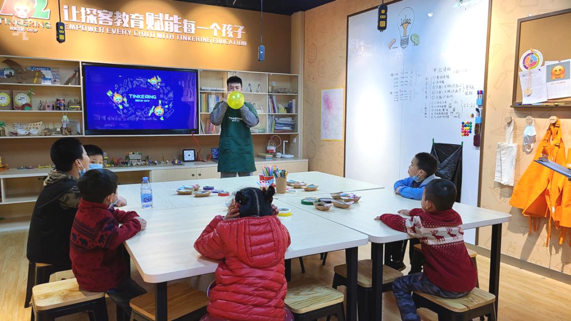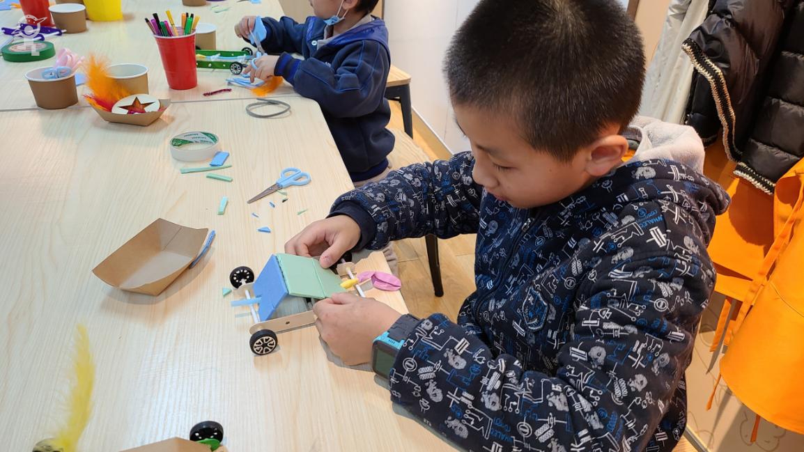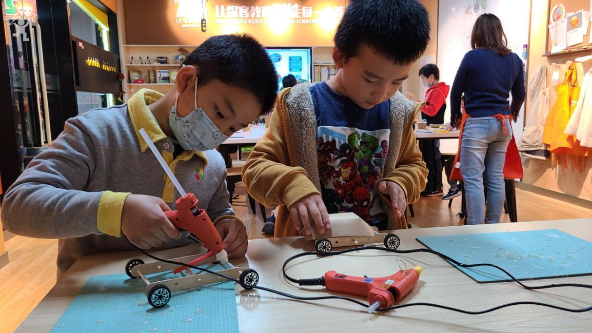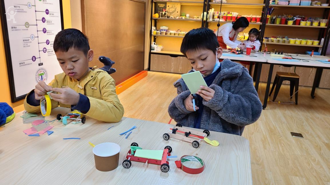 2021年1月16日至17日,探客工坊Tinkeringshop举办了为期两天的公开体验课,吸引了近百组家庭,近200名学员参与体验。体验课的主题是“气球赛车”,小朋友们不仅热情地投入到小车的制作过程中,而且认真思考,认真探究气球是如何让小车跑起来的,探客工坊也正是通过这种寓教于乐的方式,真正实践了瑞士现代儿童心理学家让·皮亚杰在《儿童智慧的起源》中提出的“玩中学、学中玩”概念。