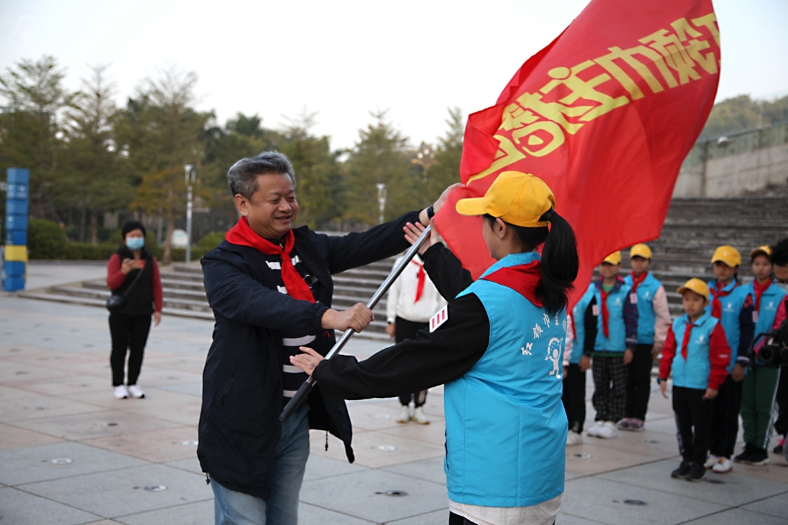 2、深圳市少先队总辅导员石淳老师向“红领巾主播团”授旗