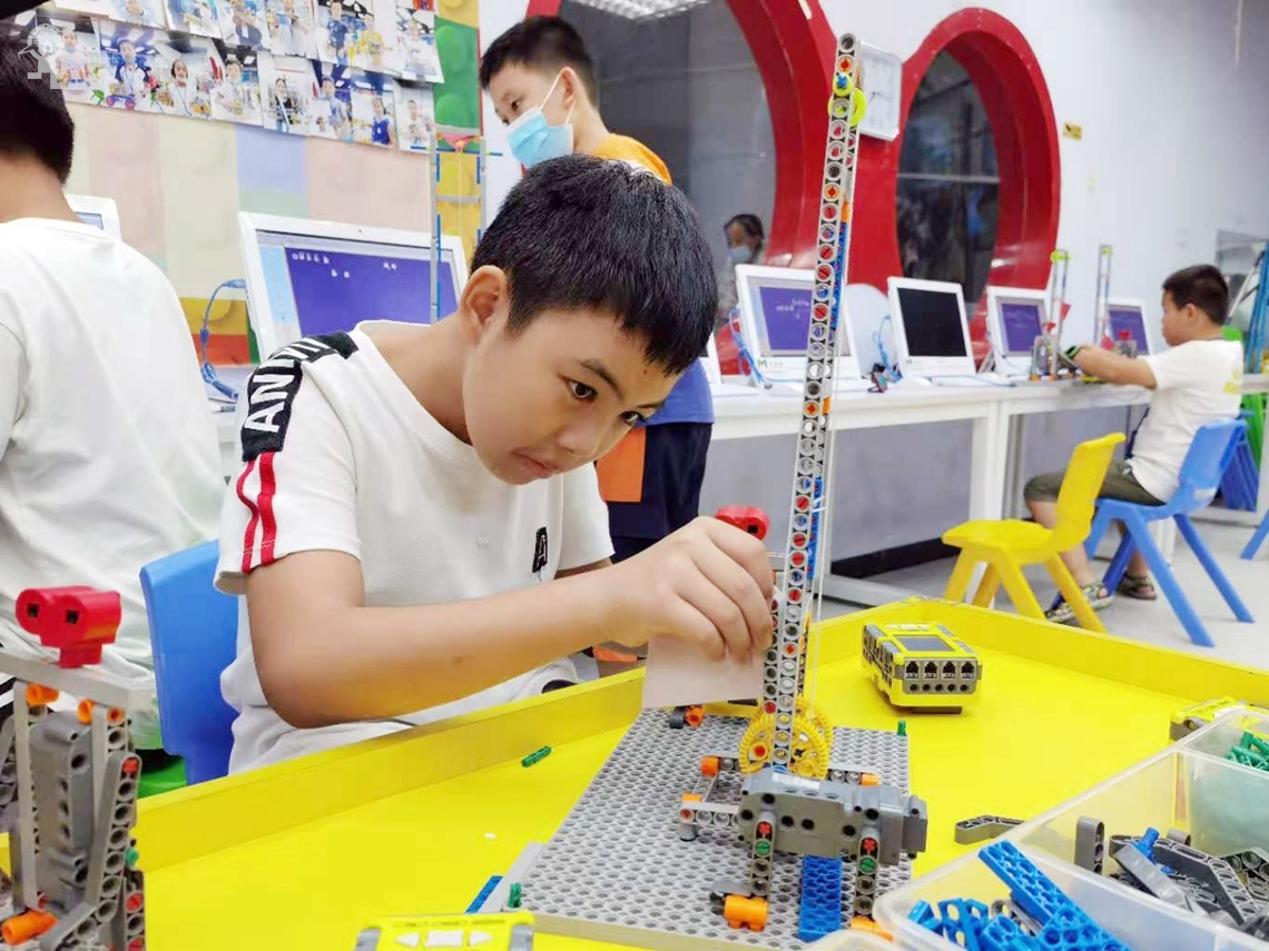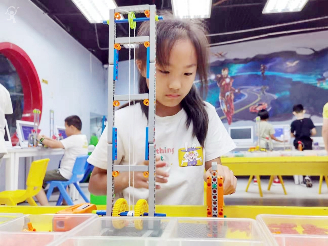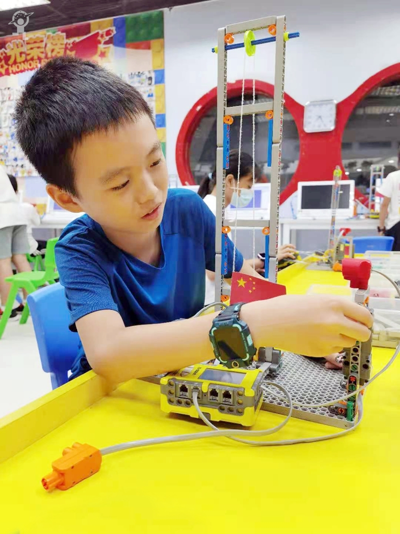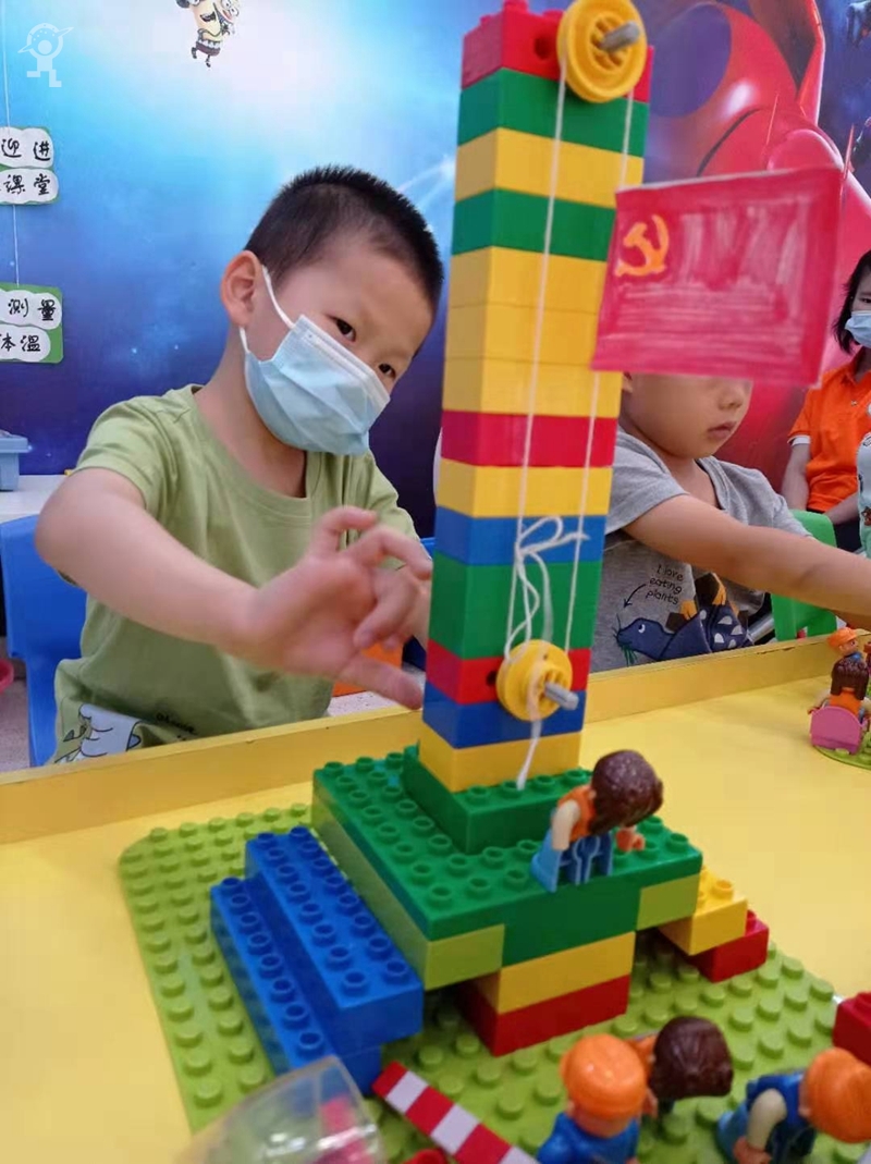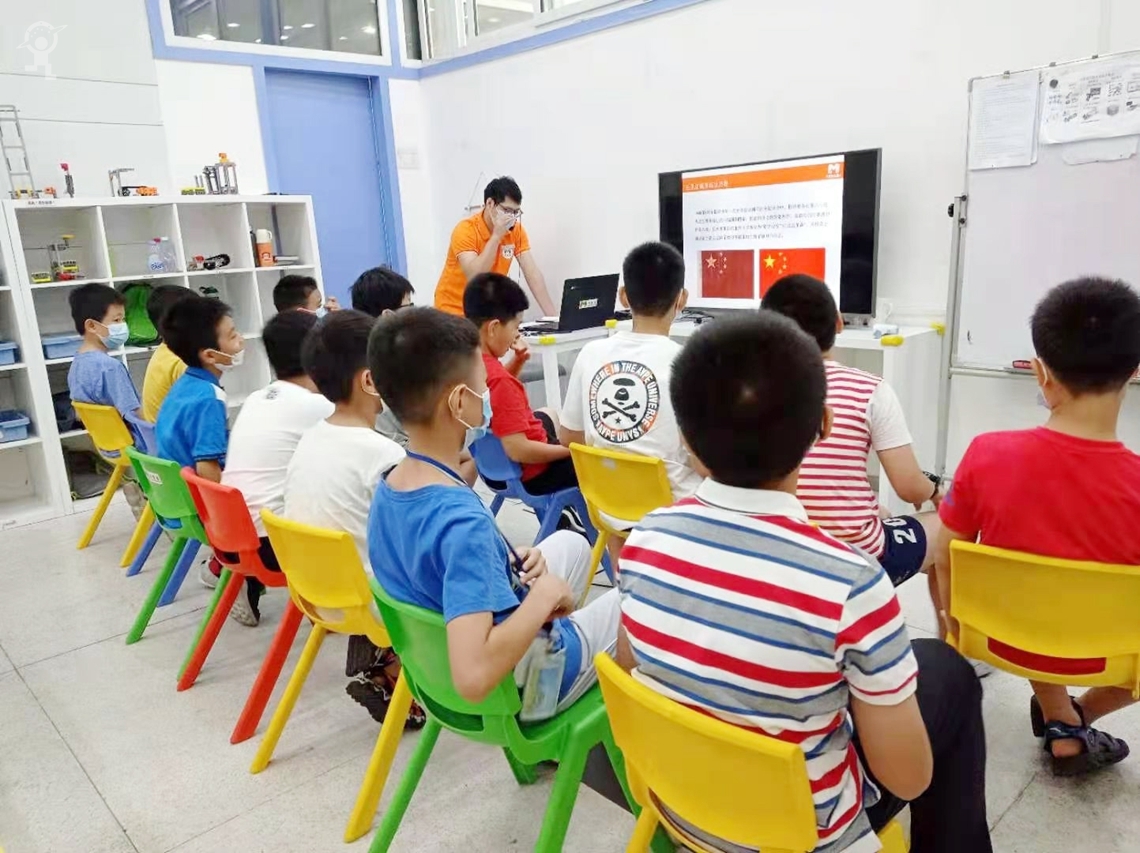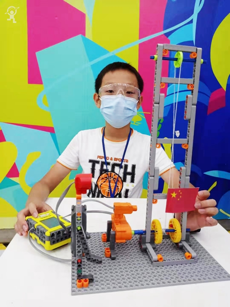 深圳市少年宫结合党史教育开发了课程《升国旗》,该课程从一首大家耳熟能详的歌曲《红旗飘飘》开始,自然地引出了这堂课的内容要素——五星红旗。教师和孩子们一起回顾了五星红旗诞生之前的历史背景,认真学习了五星红旗作为中国象征的深刻寓意,并普及国旗法部分条例。课程生动地展现了五星红旗冉冉升起的场景,孩子们更好地理解了电动升国旗的相关要求、基本模型和运行原理,并在身临其境中,充分激发了爱国爱党、维护国家利益、尊严和荣誉之心,增进了爱国情怀。