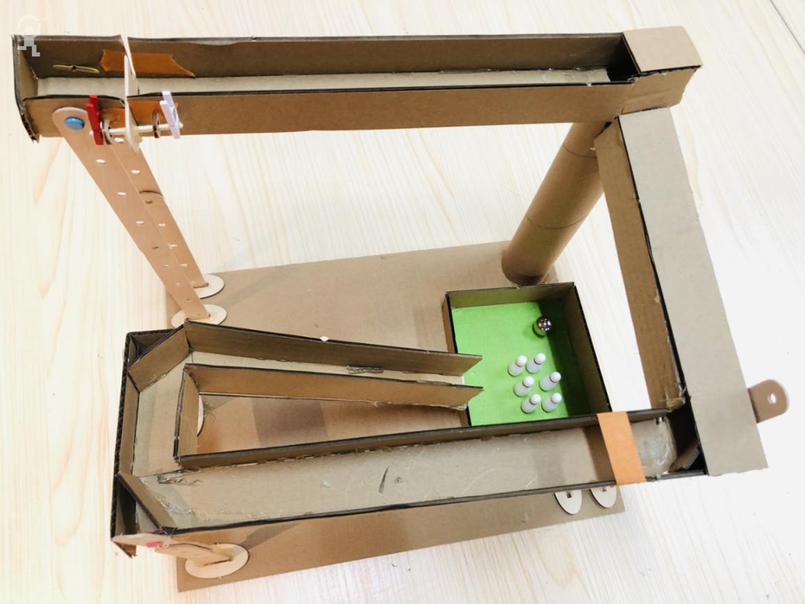 在“弹球机”这节课里,我们将带领小探客们利用弹力的原理去制作一个弹珠发射器,再利用瓦楞纸和瓶盖制作发射平台和得分的孔洞,最后利用吸管完善作品--设置得分关卡。这无疑是一个十分具有童年回忆的作品,小球一弹一跳,都牵引着你的心!在本节课里,孩子们将学习到弹力、机械组合等知识。话不多说,快让你的小球进洞吧!